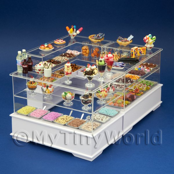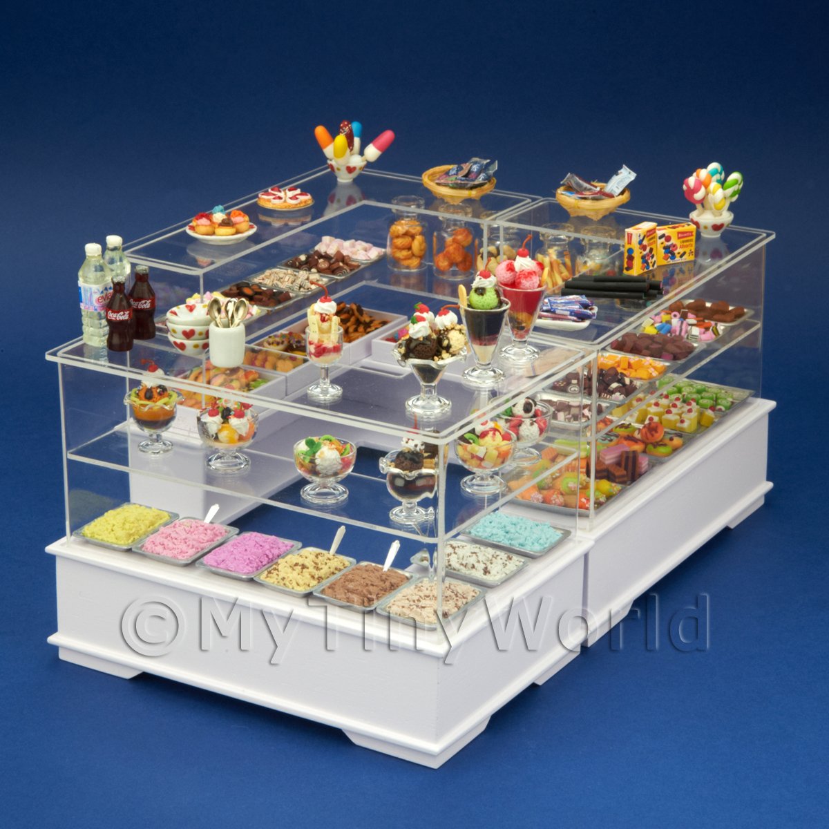 Products --> Stalls and Stands --> Filled DisplaysDolls House Miniature Complete Triple Dessert Sweet Shop Counter |