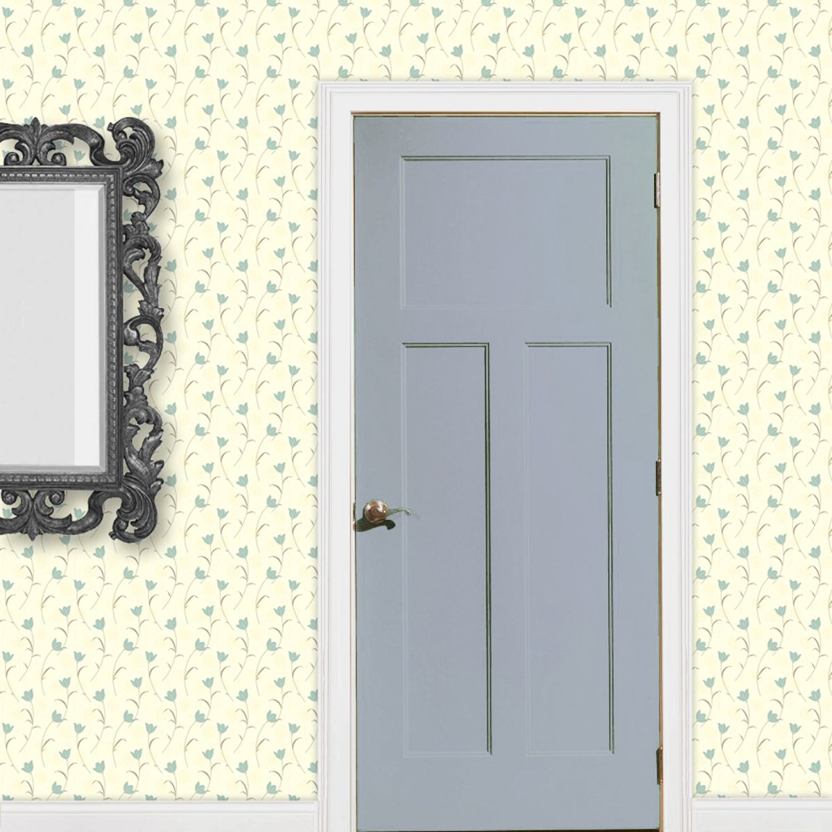 Dolls House Miniature Pale Blue Flower And Stem Wallpaper