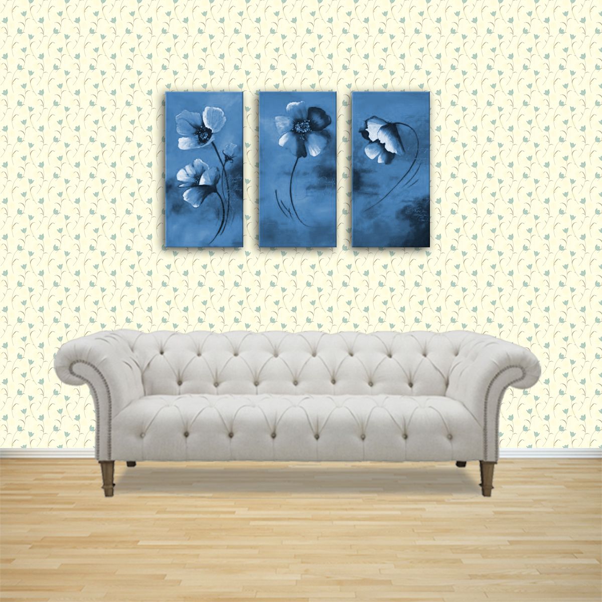 1/12 Scale Dolls House Miniatures  | Dolls House Miniature Pale Blue Flower And Stem Wallpaper