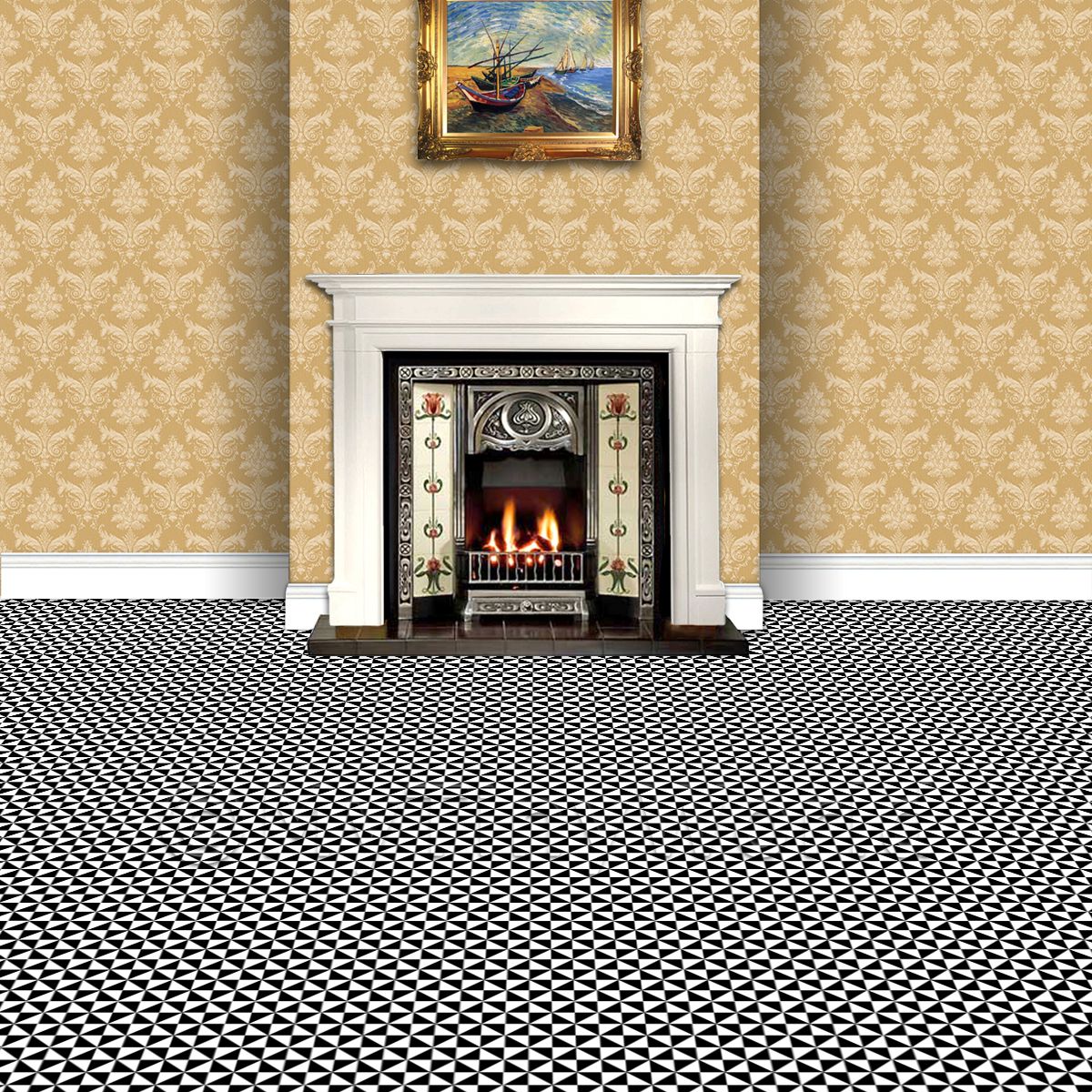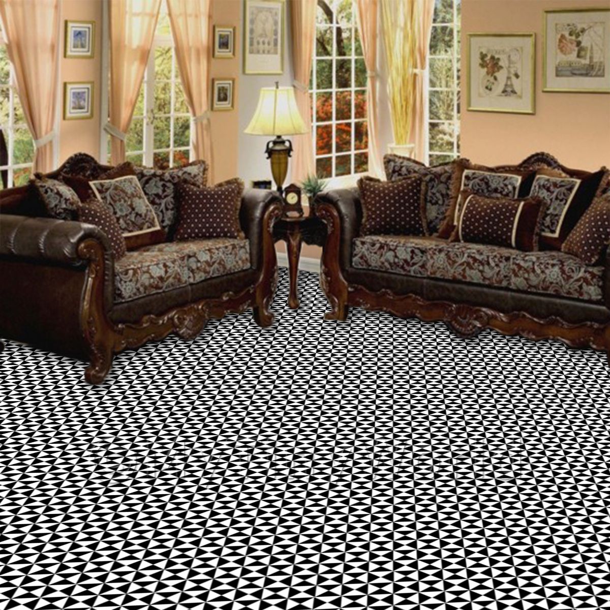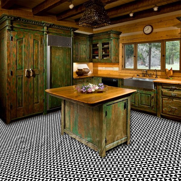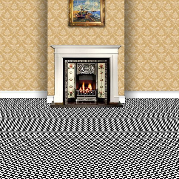 Products --> Floor Tile Sheets --> 1:12th Floor Tiles1:12th Black And White Small Triangular Design Tile Sheet With Black Grout |