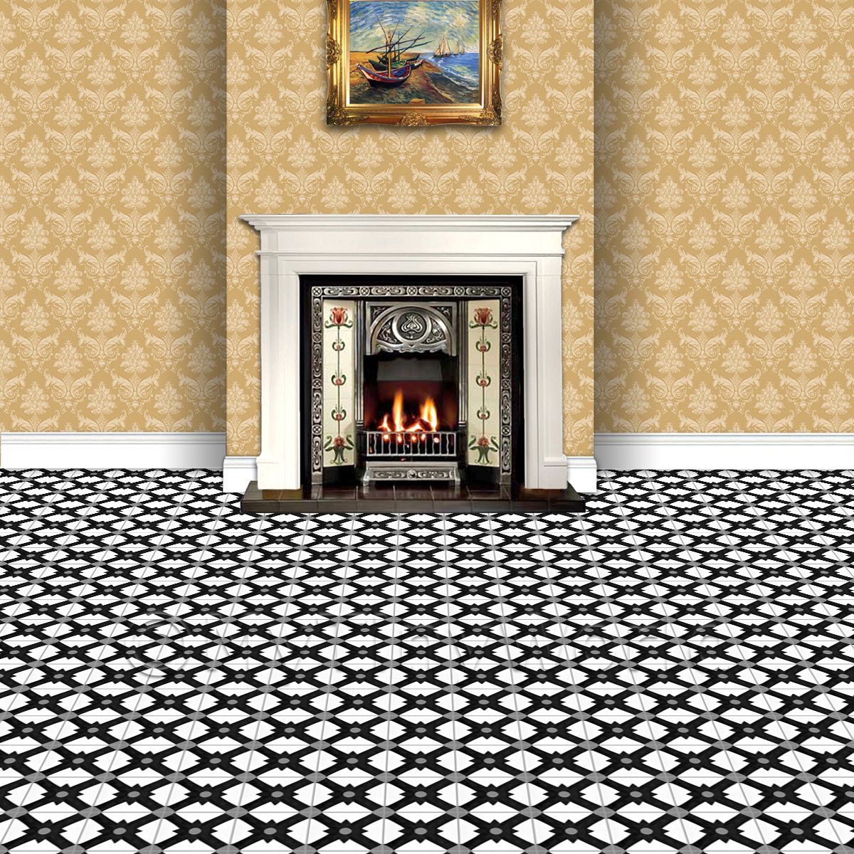 Products --> Floor Tile Sheets --> 1:48th Floor Tiles1:48th Black And Grey Cross Design Tile Sheet With Dark Grey Grout |