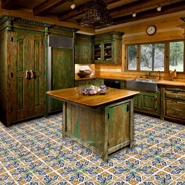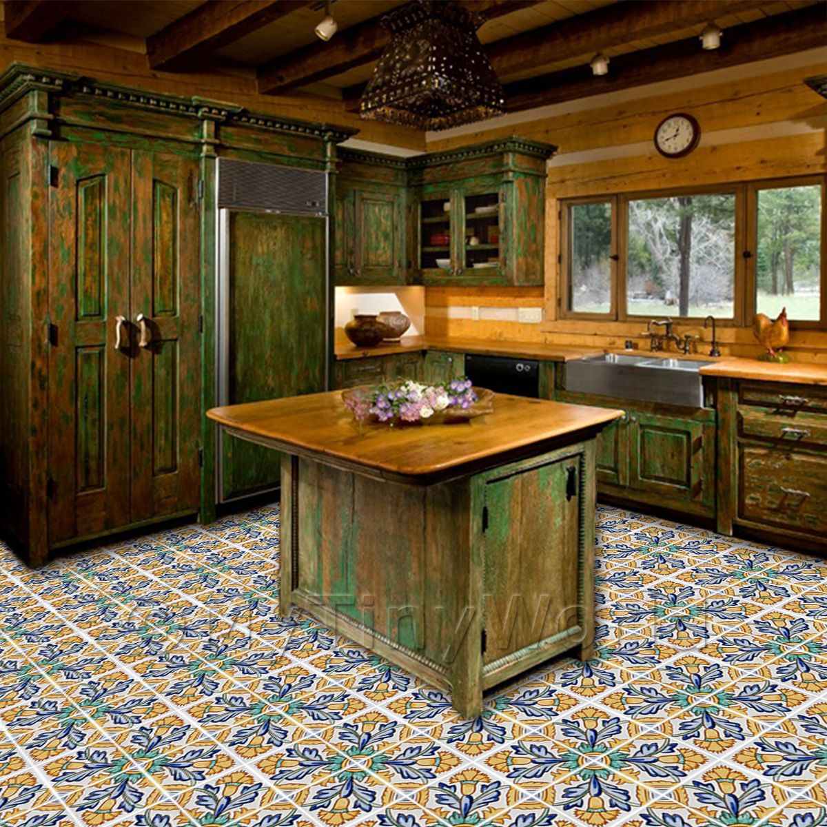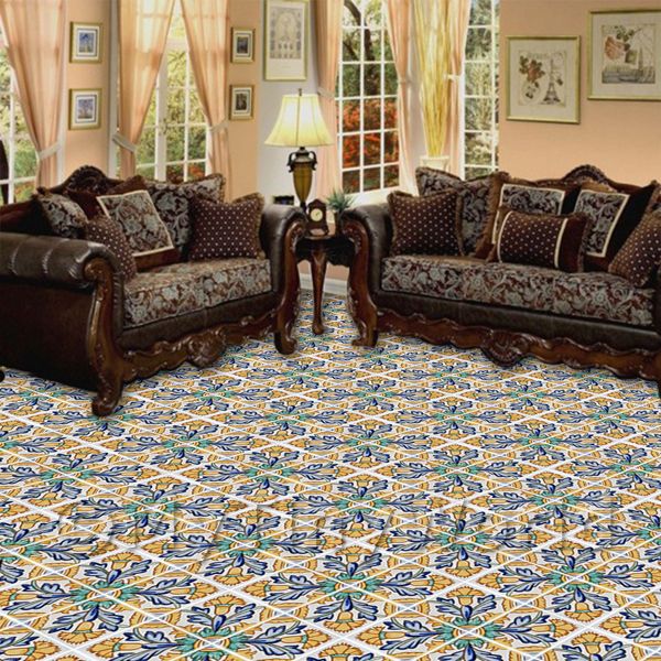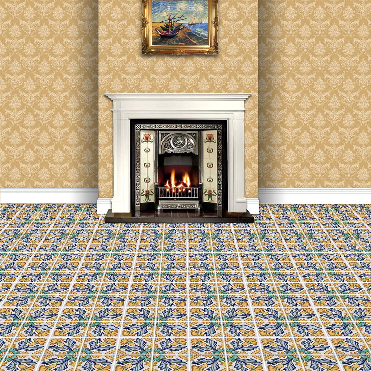 Products --> Floor Tile Sheets --> 1:24th Floor Tiles1:24th Yellow And Blue Flower Design Tile Sheet With Black Grout |
