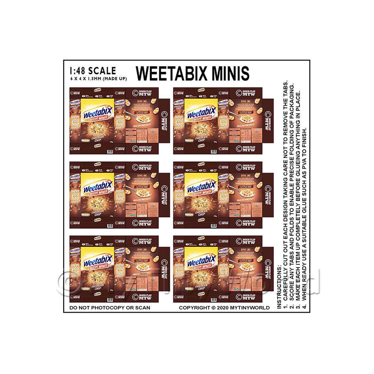 Products --> Bulk Packaging --> 1:48th Bulk Packaging1:48th Dolls House Miniature Packaging Sheet of 6 Weetabix Minis |