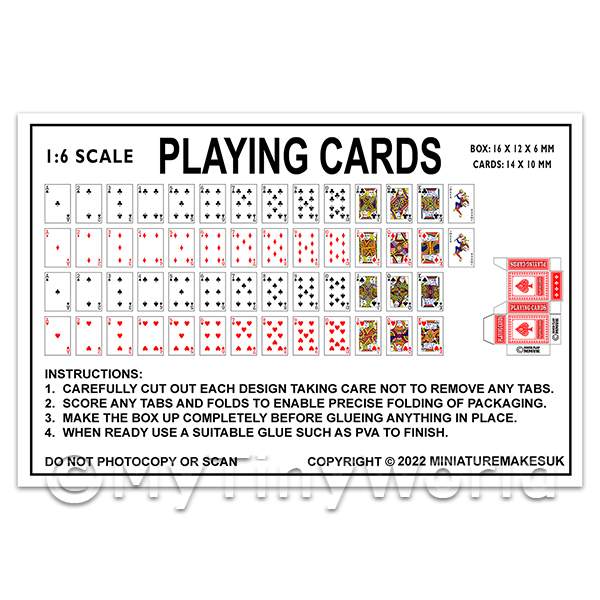 Products --> Board Games --> Card GamesDolls House Miniature 1:6th Deck of Cards Kit |