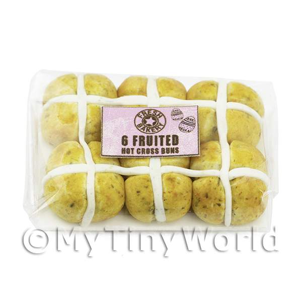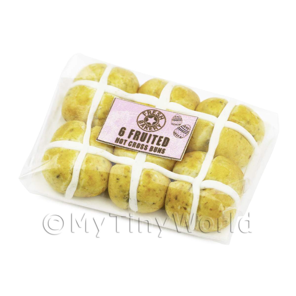 1/12 Scale Dolls House Miniatures  | Dollls House Miniature Hot Cross Buns in Packet (Pink Label)