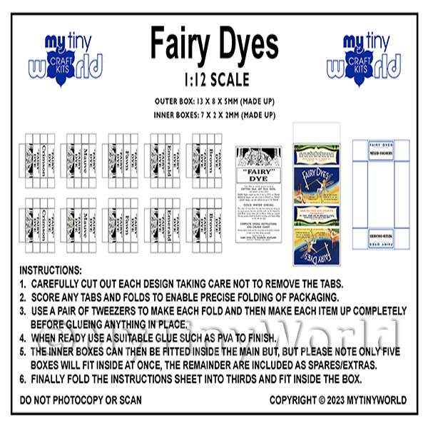 Products --> Bulk Packaging --> 1:12th Bulk Packaging1:12th Dolls House Miniature Packaging Sheet of Fairy Dye |