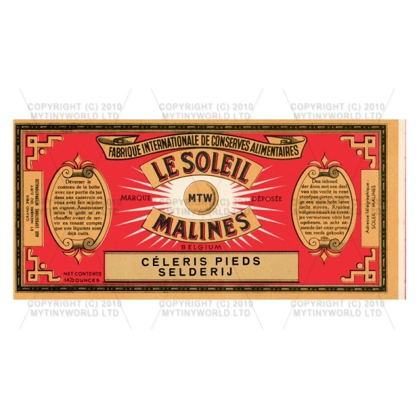 This can label is digitally enhanced from an authentic original French Le Soleil Malines can label from the 1890s owned by us.