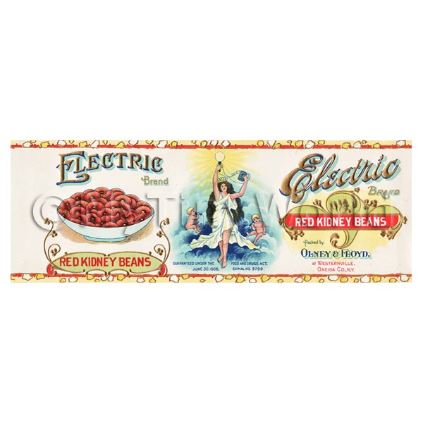 Products --> Packaging - Old --> Old Cans - 1900sDolls House Miniature Electric Brand Red Kidney Beans Can (1900s) |