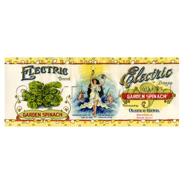 Products --> Miniature Labels --> Can Labels - 1900sDolls House Miniature Electric Brand Spinach Label (1900s) |