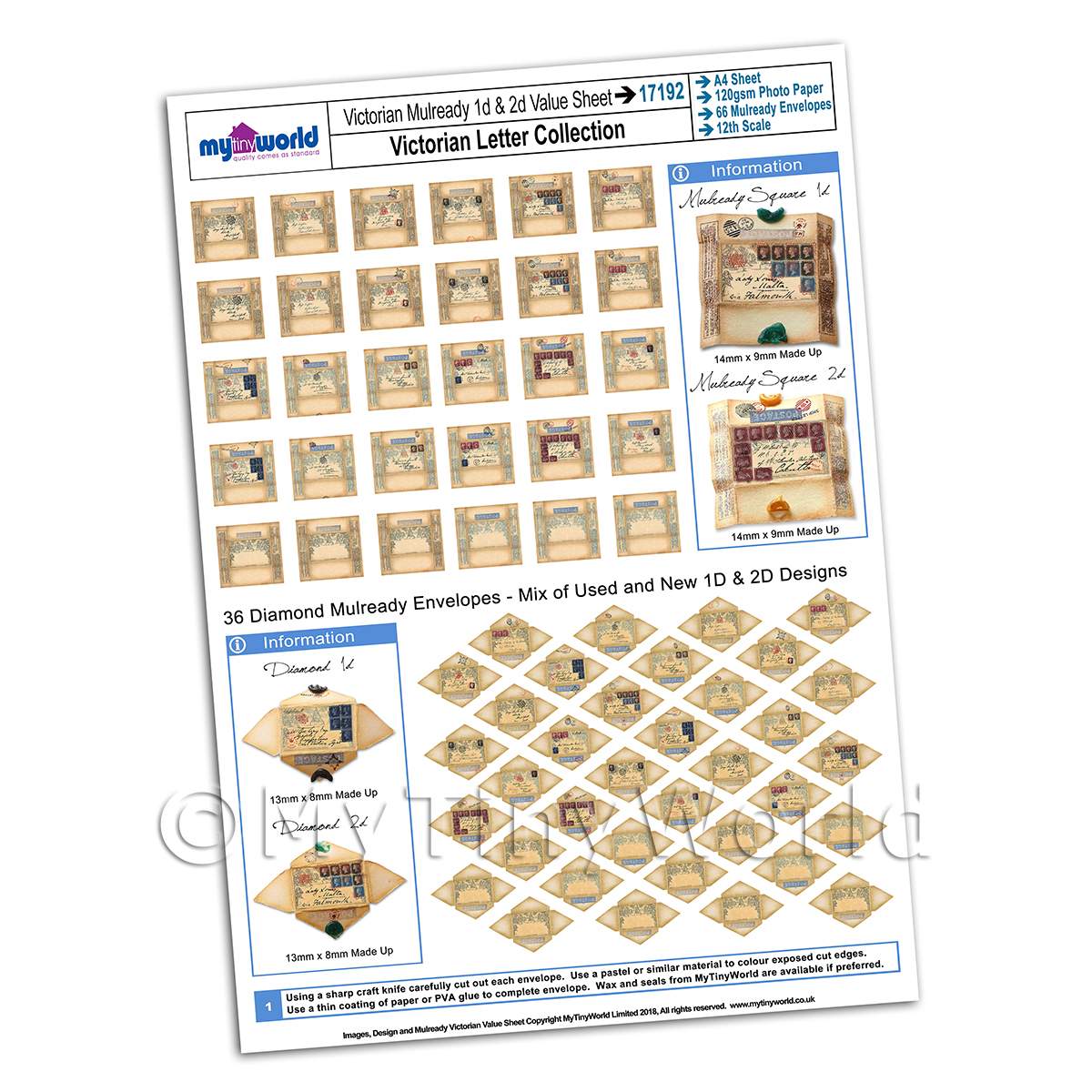 MyTinyWorld has an extensive collection of dolls house miniature A4 Value Print Sheets available from stock for next day shipping.