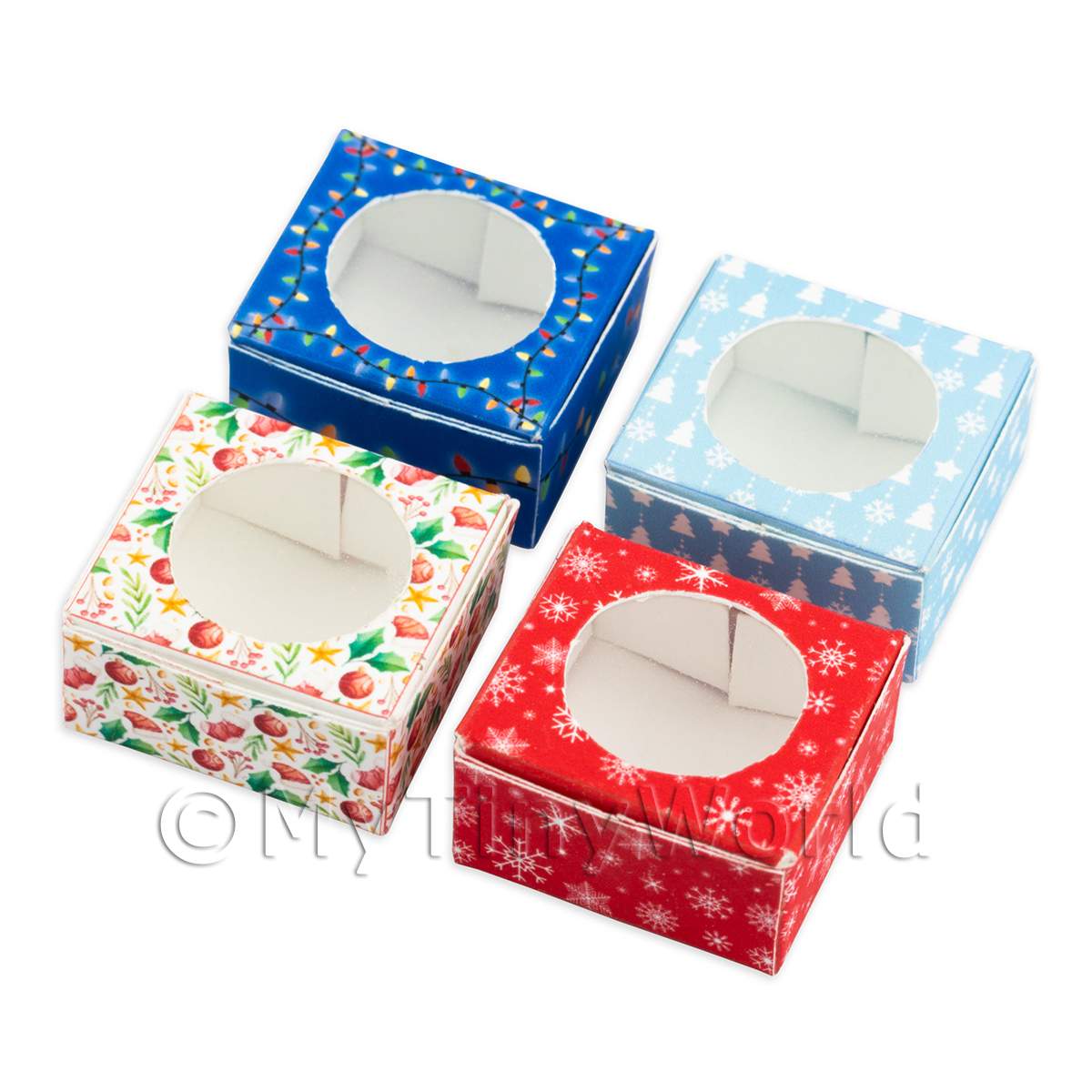In a variety of four different festive styles, they will fit perfectly into any Christmas scene, they are the perfect finishing touch to any dollshouse, miniature bakery or shop scene.