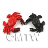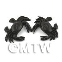 2 Large black crabs with black front claws. A fine addition to any fishmongers. Our range of air dried clay fish are individually hand made with air dried clay unless stated and hand painted to the highest quality producing a unique item each time.