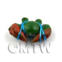 One green crab with claws tied. Our range of air dried clay shellfish are individually hand made with air dried clay unless stated and hand painted to the highest quality producing a unique item each time.
