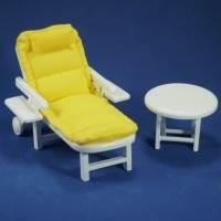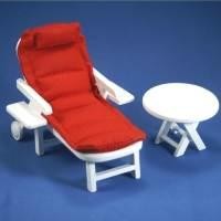 Dolls House Miniature Garden Deck Chair - Orange and white