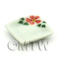 Dolls House Miniature Hibiscus Design Ceramic 21mm Square Plate