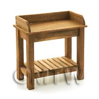 A dolls house miniature Oak Stained Potting Table to suit all garden scenes.