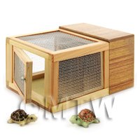 Dolls House Miniature Wooden Hutch With Two Tortoises
