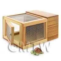 Dolls House Miniature Wooden Animal Hutch With A Brown Tortoise