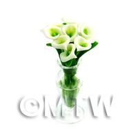 9 Dolls House Miniature Cut Calla Lilies in a Glass Vase