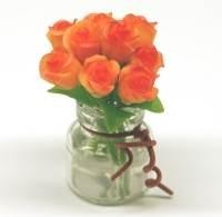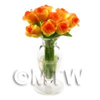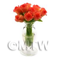 9 Hand made flexible Orange Roses in a Short Glass Vase.