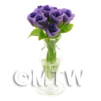 9 Hand made flexible Violet & Purple Roses in a Glass Vase.