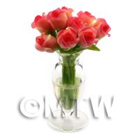 9 Hand made flexible Orange & Red Roses in a Glass Vase.
