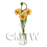 4 Miniature Yellow Cut Flowers in a Glass Vase