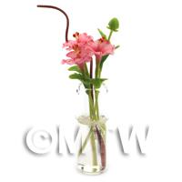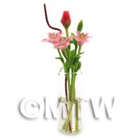 5 Miniature Long Stemmed Pink Lilies in a Glass Vase