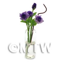 4 Miniature Long Stemmed Purple Roses in a Glass Vase