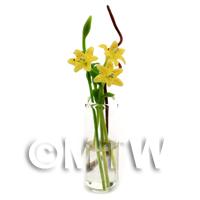 5 Miniature Long Stemmed Yellow Lilies in a Glass Vase