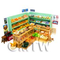 This is our ultimate store layout comprising over 400 handmade individual dolls house miniatures. The colour of the rear shelves can be changed to one that suits you from our range of 5.