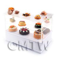 This counter comes complete with everything pictured including 5 dolls house miniature cakes on dollies, 4 small round ceramic plates with assorted deserts, large ceramic plate complete with a cake missing a slice.