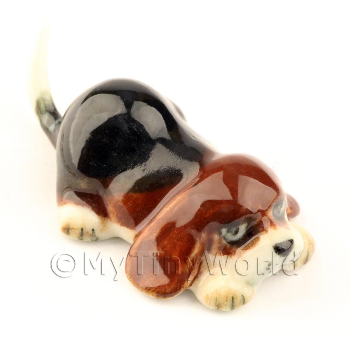 This miniature ceramic dog is part of our highly detailed hand made and painted dolls house miniature ceramic animals range.