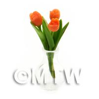 Bunch of 3 Handmade Dolls House Miniature Orange Tulips