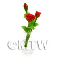 Bunch of 3 Handmade Dolls House Miniature Red Roses