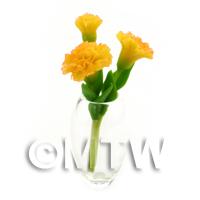 Bunch of 3 Handmade Dolls House Miniature Yellow Carnations