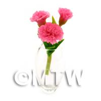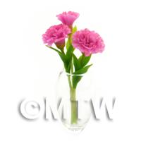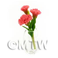 Bunch of 3 Handmade Dolls House Miniature Pink Carnations