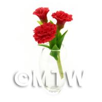 Bunch of 3 Handmade Dolls House Miniature Red Carnations