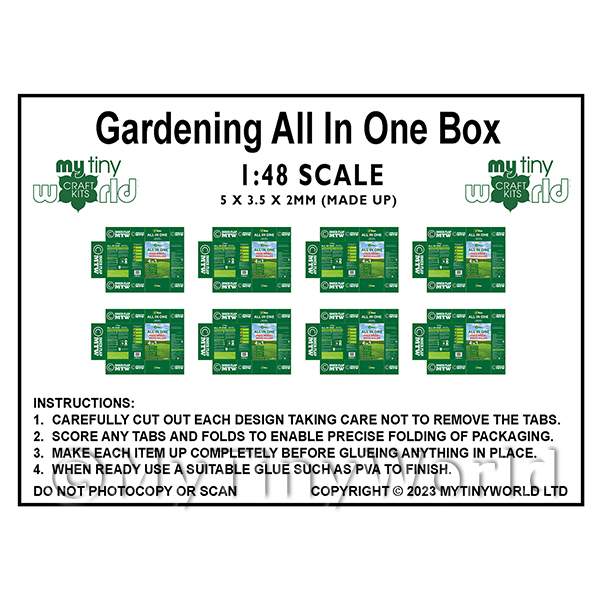 One sheet of 8 1/48th Weed Killer Boxes to cut out and make up from our world class packaging range.