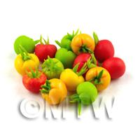 Realistic looking chillies with stalks,mixture of red, green and yellow.Price is for 10 items